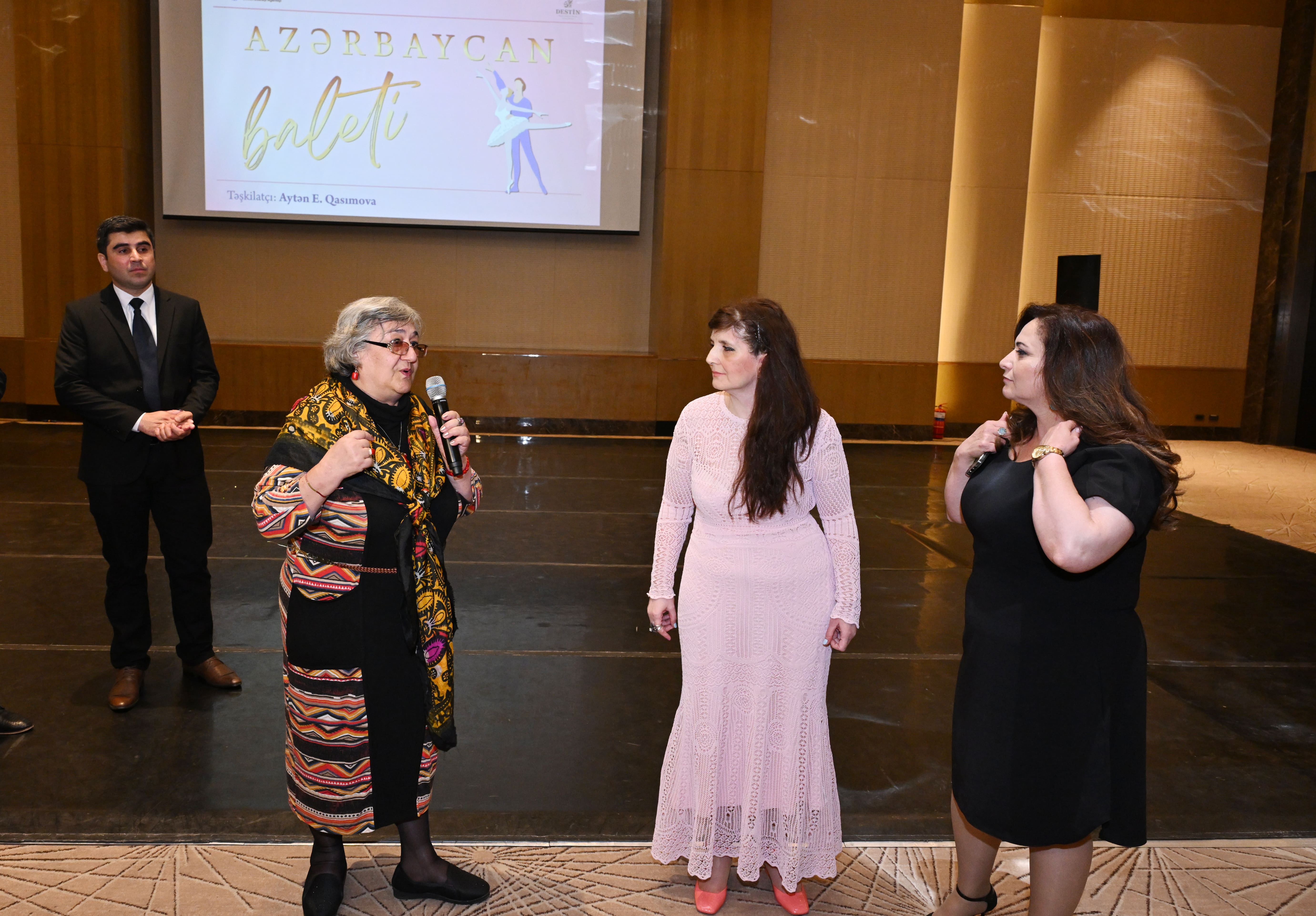 əvvəl filmin hazırlanmasına dəyərli məsləhətlər vermiş mədəniyyət və incəsənət xadimlərimizə, Azərbaycan Televiziyasının video-kino arxiv materialları şöbəsinə, Milli Arxiv İdarəsinə, Azərbaycan Dövlət Film Fonduna təşəkkürünü bildirmiş, onların qiymətli əməyini minnətdarlıq hissi ilə qeyd etmişdir. Tədbir “Azərbaycan baleti” filminin nümayişi ilə davam etmişdir. Filmin sonunda “Mədəni İnkişafa Dəstək” ictimai birliyinin sədri Aytən Qasımova tamaşaçılara tədbirə qatıldıqlarına görə təşəkkürünü bildirmiş və onları filmlə bağlı fikirlərini söyləməyə dəvət etmişdir. Müzakirələr zamanı “Yaradıcı Qadınlar” ictimai birliyinin sədri, sənətşünaslıq üzrə fəlsəfə doktoru Afaq Hüseynova, Azərbaycan Respublikasının Xalq artisti, kinorejissor Vaqif Mustafayev təəssüratlarını və mülahizələrini deyərək, Azərbaycan baleti tarixini bir araya gətirərək tamaşaçılara tanıdan, bu sənətin hər pilləsində böyük zəhməti olan balet ustalarına tamaşaçı ilə ünsiyyətdə olmaq imkanı verən bu filmin böyük əhəmiyyət daşıdığını vurğulamış və yaradıcı heyətə gələcək işlərində uğurlar arzulamışlar.